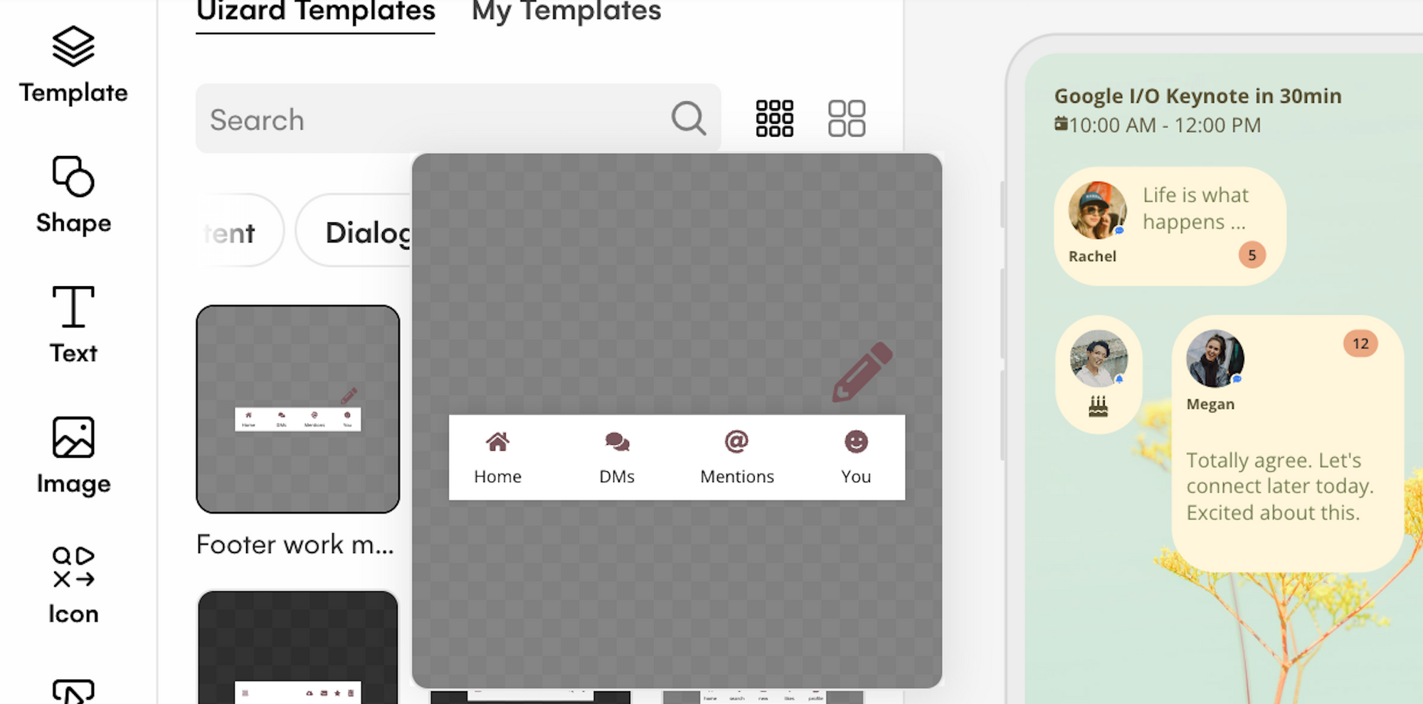 Using a premade footer or navigation component template in Uizard ensures that there is sufficient spacing between icons. Make your Android design navigation easy to use and understand.