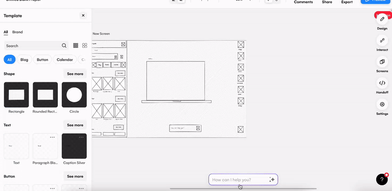Once you have turned Wireframe Mode on, any screen you generate in the Autodesigner widget will automatically transform into low-fidelity once added to your project. This applies to both screen generation via prompt and via screenshot. So you can upload a high-fidelity screenshot and Wireframe Mode will convert it into low-fidelity as soon as the new screen has been generated. This means that product teams can use the Screen Generator to expand a low-fidelity product solution in no-time.