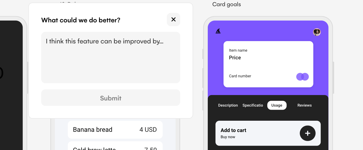 Feature feedback comments on our theme, screen and image generations help to not only provide our team with insights into how you are finding the widget, but to improve it as well. Feel free to leave honest suggestions by clicking the ‘no’ option when appropriate. As detailed in the image below, you can then go ahead and submit your feedback directly to our team.