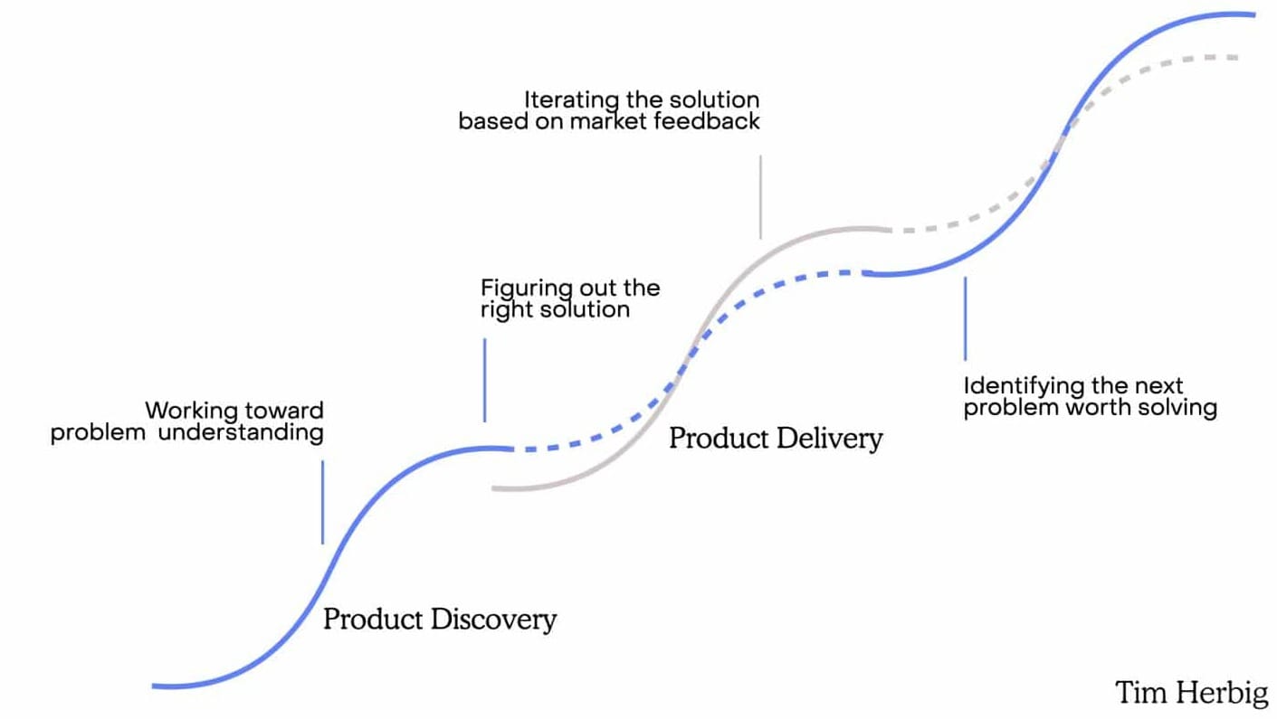 This is best represented in the following diagram from Tim Herbig’s Product Discovery Guide: