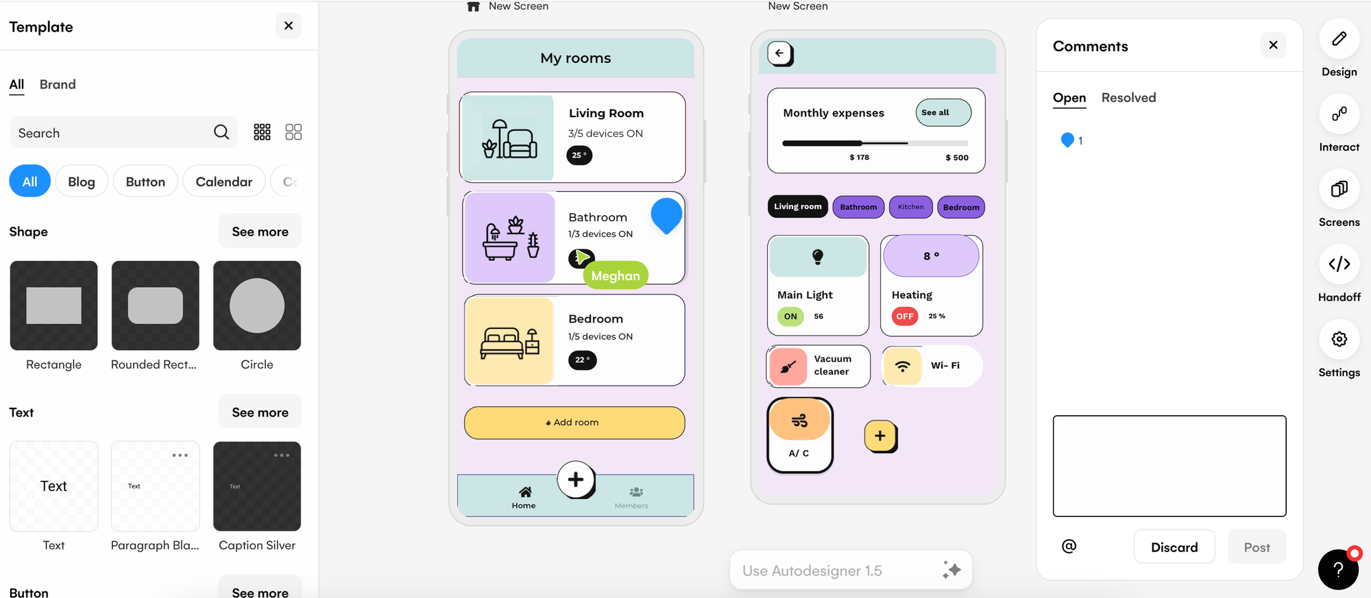 Product ideation sessions are quick and simple when using Screenshot Scanner. Once your product design is in the editor, product teams can ideate collaboratively using a number of functionalities. The comments feature allows product teams, stakeholders and developers to leave comments on the product visuals in Uizard and then resolve them once actioned. This is great for feedback and further iterations on screenshot generations. Sticky note components can also be used to leave insights, or to mindmap new ideas.