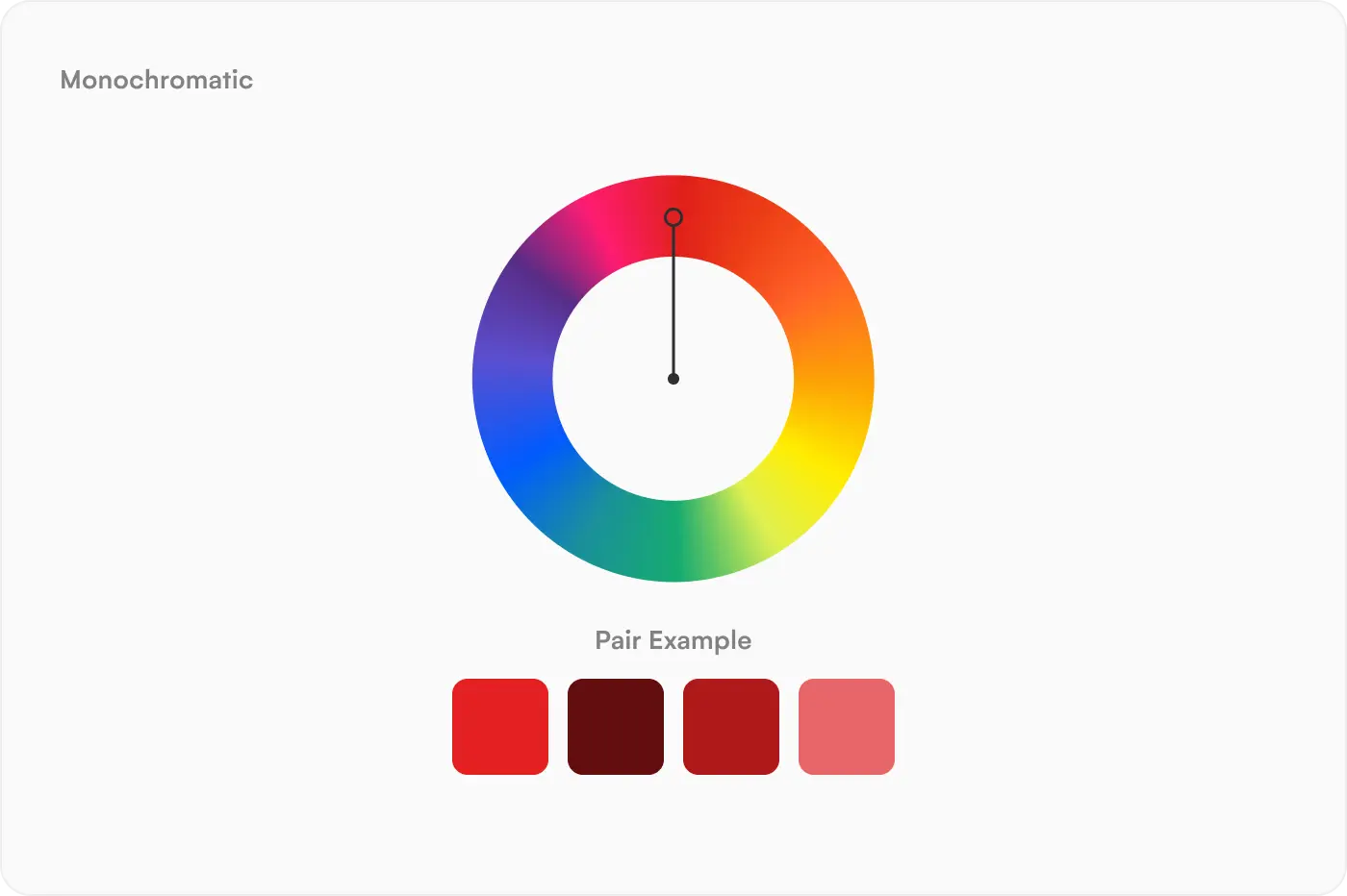 Monochromatic color palettes use various tones of one color. So if you decided that you wanted to use red in your design, you could use lighter and darker variations in your iOS app design. Whilst this doesn’t offer stark contrasts, it can be aesthetically pleasing for users.