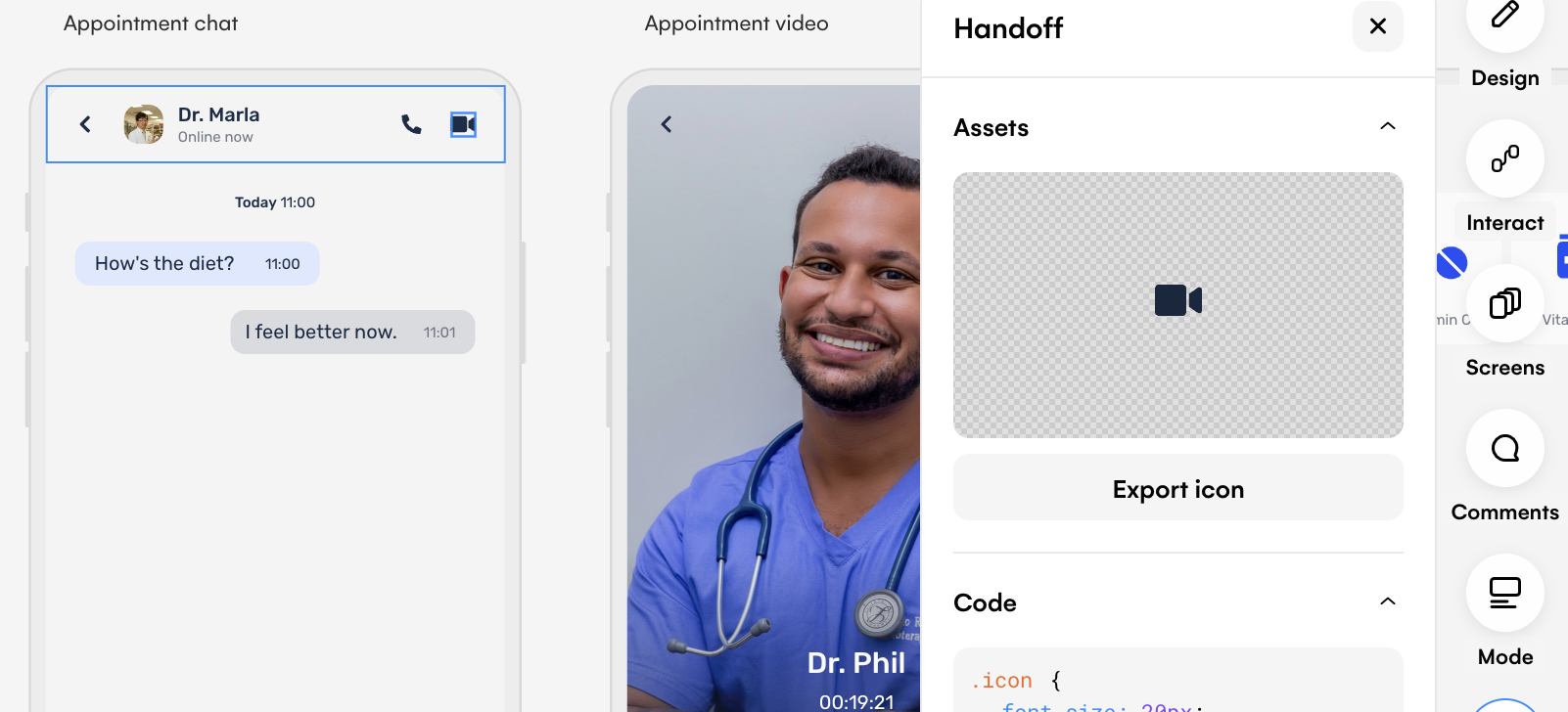 If you have selected an icon element, you can also export this asset using Handoff Mode too. This option sits above the code section in the panel, and helps to further develop your project. Improve your design workflow whilst meeting team and project needs effortlessly with Handoff Mode in Uizard.